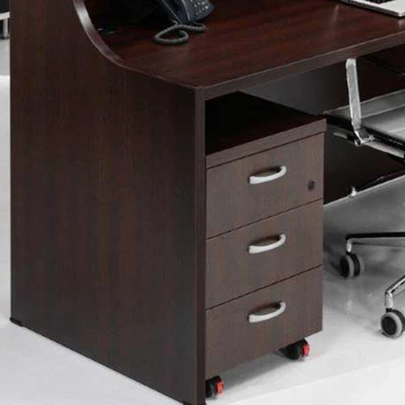 Cajoneras operativas realizadas con encimera de 30 mm., base de 19 mm y trasera de 10 mm. Tiradores de serien en PVC gris. Cerradura de bloqueo para todos los cajones y archivo.