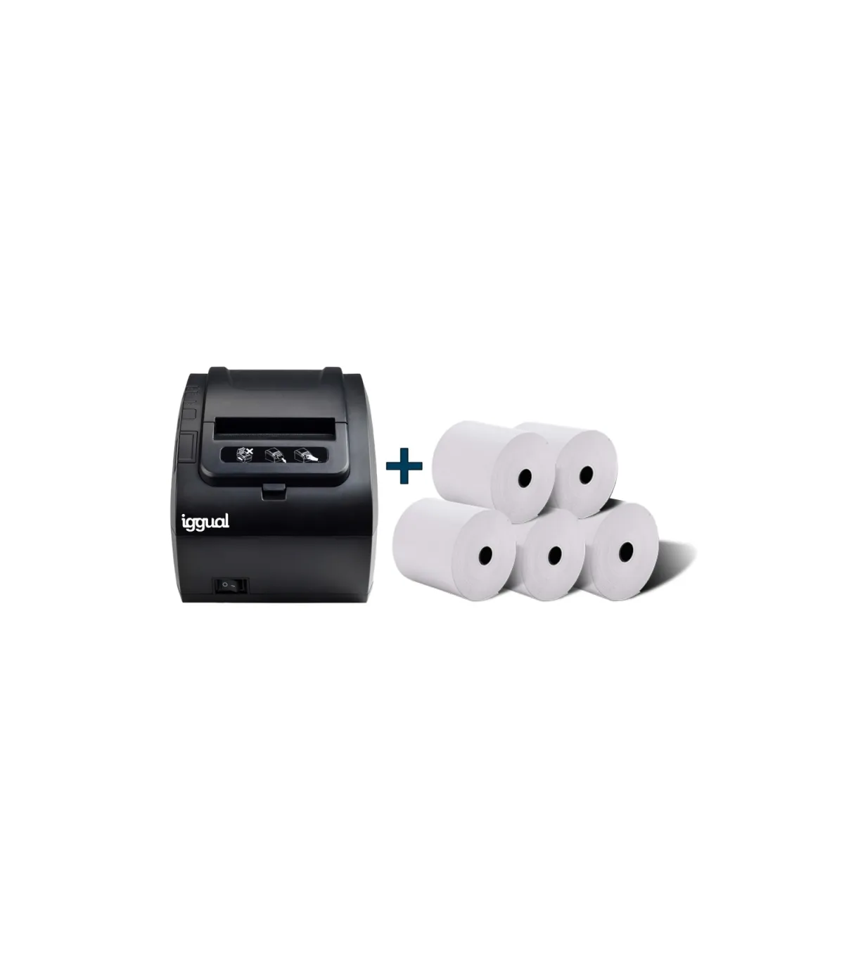 TP8002 de iggual, junto a cinco rollos de papel térmico.