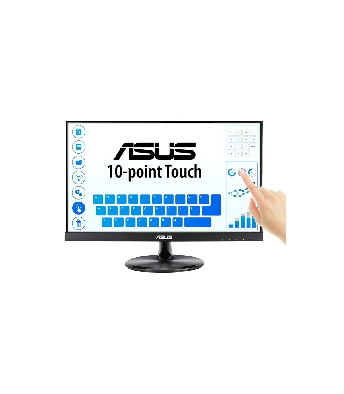 Monitor Táctil ASUS VT229H: 21,5" FHD (1920x1080), Pantalla táctil de 10 puntos, IPS, Ángulos de visión de 178°, Sin marco, Antiparpadeo, Luz azul de baja intensidad, HDMI, dureza 7H