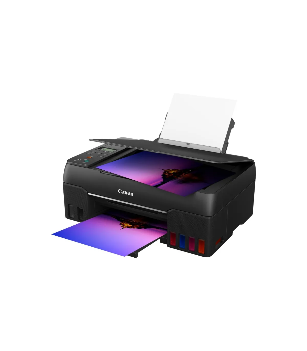| Impresión | - Resolución de impresión: Hasta 4800 x 1200 ppp - Tecnología de impresión: 2 cabezales de impresión FINE (izquierdo: BK/R/GY; derecho: C/M/Y) Impresora con depósito de tinta rellenable - Velocidad de impresión en blanco y negro: aprox. 3,9 ipm - Velocidad de impresión en color: aprox. 3,9 ipm - Velocidad de impresión fotográfica: 10 x 15 cm sin bordes: aprox. 47 segundos - Impresión sin bordes: A4, LTR, 4" x 6" (10 x 15 cm), 5" x 7" (13 x 18 cm), 7" x 10" (18 x 25 cm), 8" x 10" (20 x 25 cm), Cuadrado 5" x 5” (127 x 127 mm), Cuadrado 3,5” x 3,5" (89 x 89 mm), Tamaño de tarjeta 55 x 91 mm(2,17" x 3,58") - Impresión a dos caras: Funcionamiento manual |