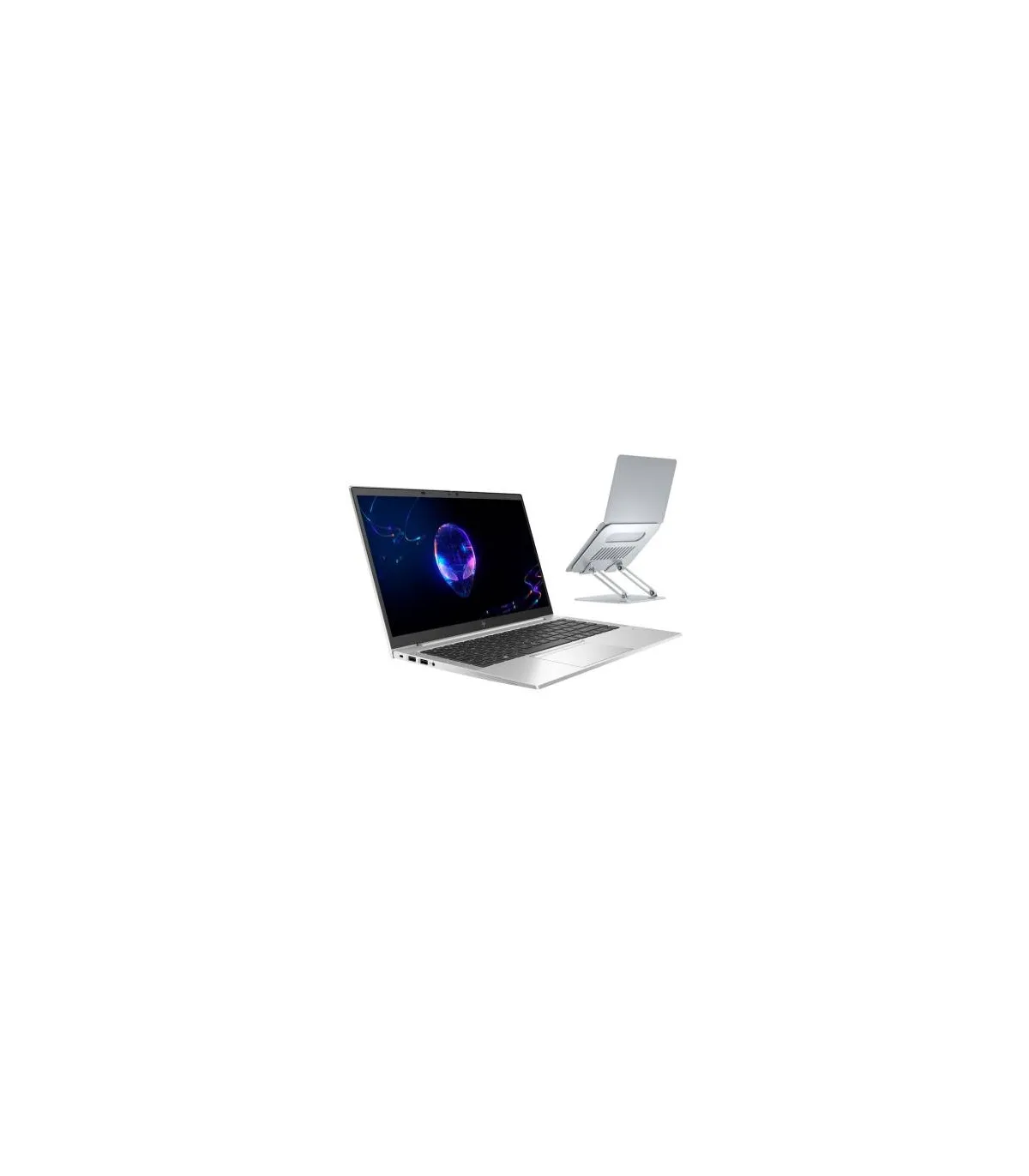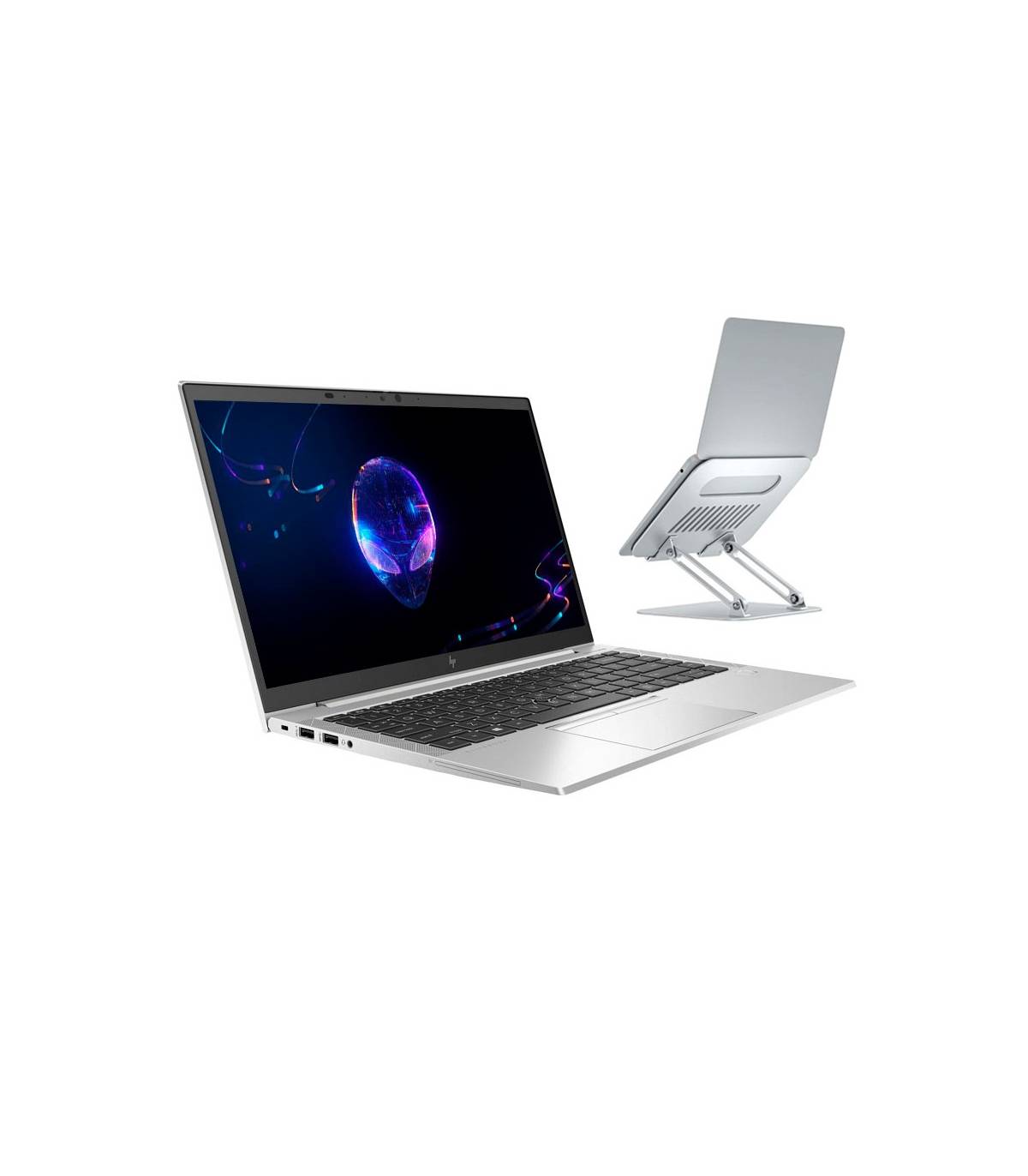 El portátil reacondicionado HP EliteBook 840 G7 Core i5 10210U con soporte Aisens, incluye cargador.