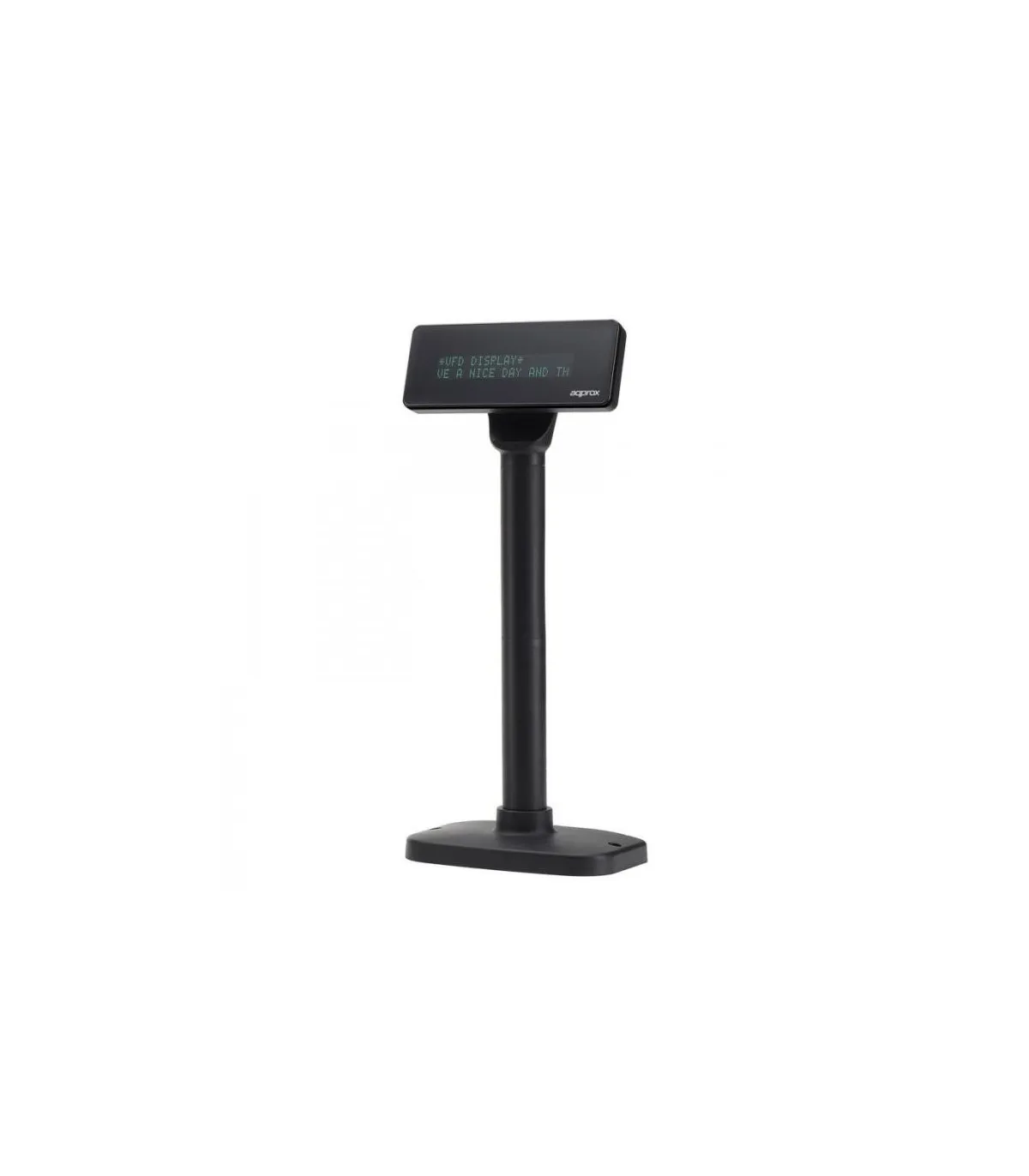 Visor de cliente para punto de venta, de 20 caracteres y 2 líneas, ideal para informar al cliente del los datos más relevantes del proceso de compra, marcando unidades y precios de los productos a medida que pasan por el lector de códigos.