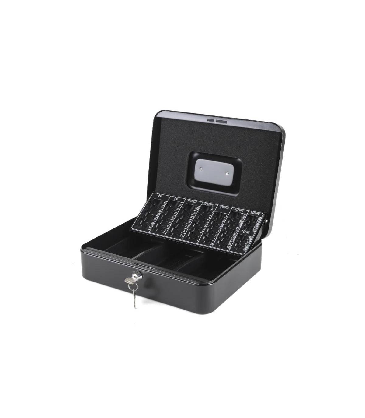 Fabricada con materiales resistentes y duraderos, esta caja combina robustez con funcionalidad. Cuenta con compartimentos bien organizados para billetes y monedas, permitiendo un manejo ágil y ordenado del efectivo.