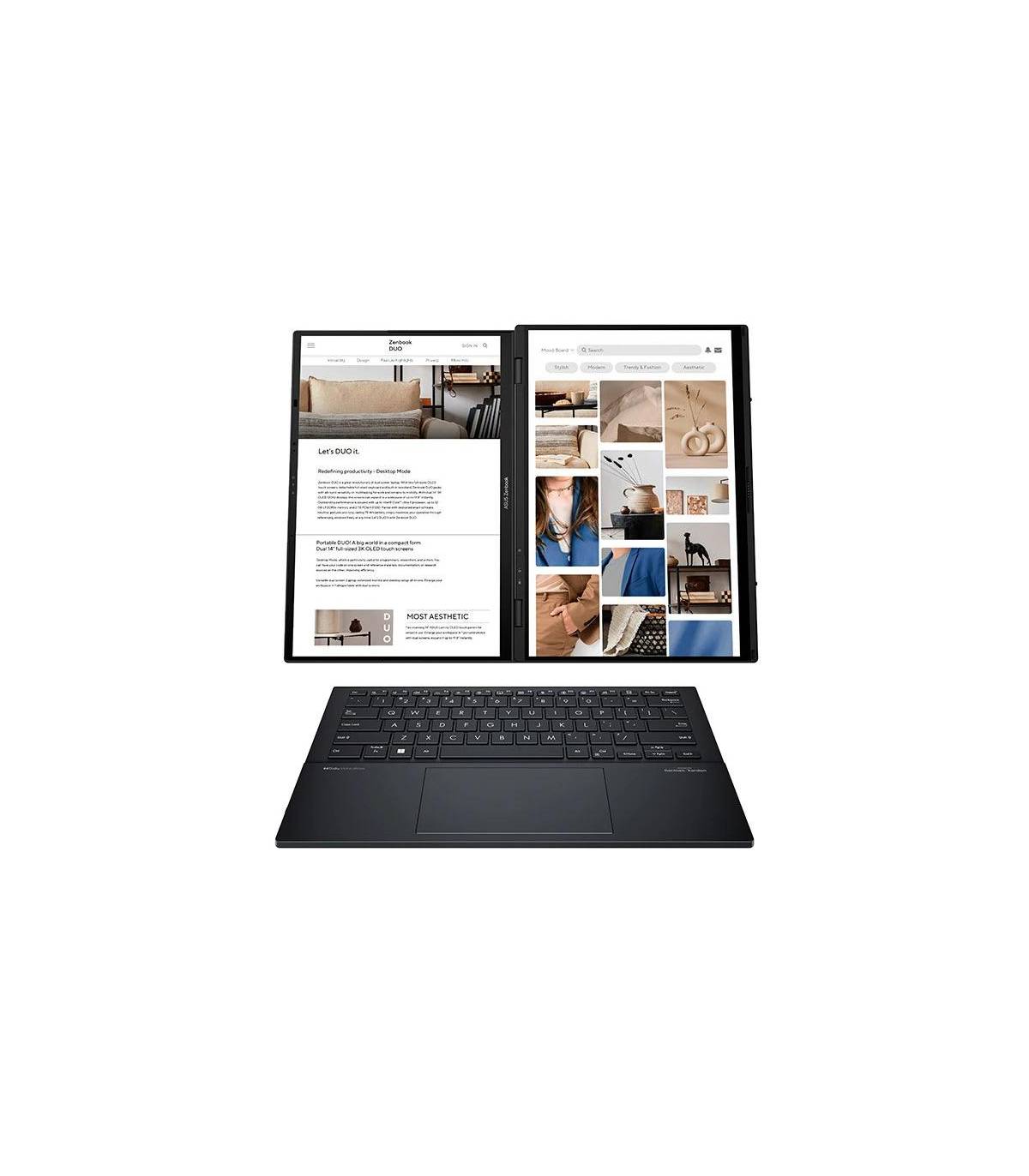El Asus ZenBook Duo OLED UX8406CA-PZ152W es un portátil revolucionario que incorpora dos pantallas táctiles OLED de tamaño completo, teclado desmontable de tamaño completo y soporte integrado.