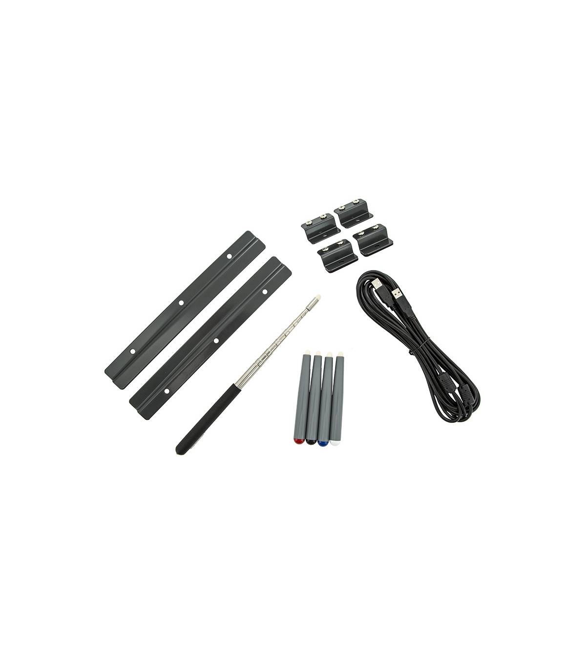 | Incluye: | - Guía del usuario - CD-Software EClass - Cable prolongador USB Tipo-A - Juego de 4 rotuladores y marcador extensible - Accesorios para colgar en la pared |