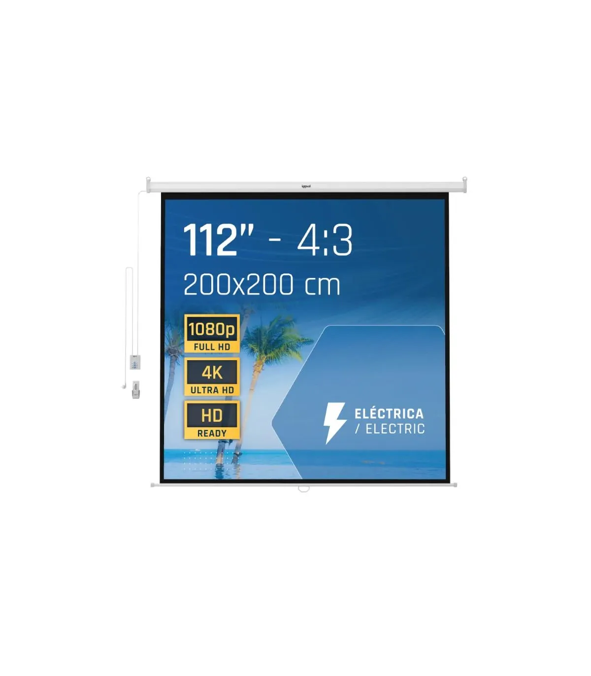 La pantalla eléctrica PSIES200 de iggual, con un tamaño de 200x200 cm, convierte cualquier oficina, aula o negocio en una sala de proyección profesional. Su superficie de alta calidad cuenta con 4 capas especiales que mejoran el contraste, la nitidez y los colores, asegurando una imagen perfecta en cada presentación. Se controla fácilmente con mando a distancia o desde la pared, y su instalación es flexible, ya sea en techo o pared. Compatible con proyectores desde SVGA hasta 4K, ofrece una experiencia visual óptima en cualquier entorno.