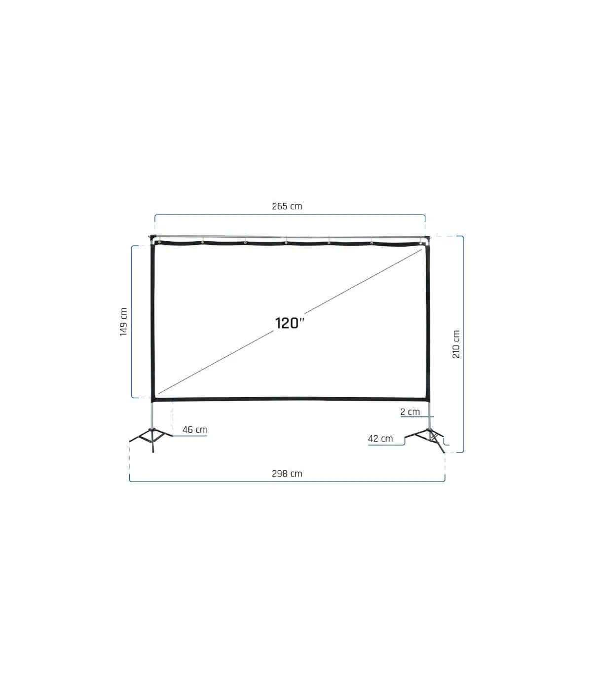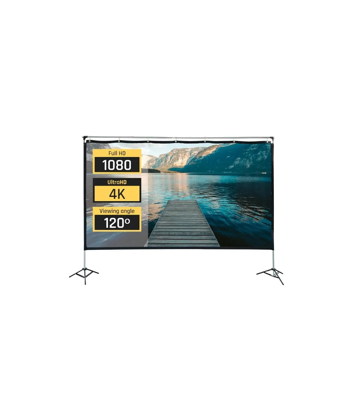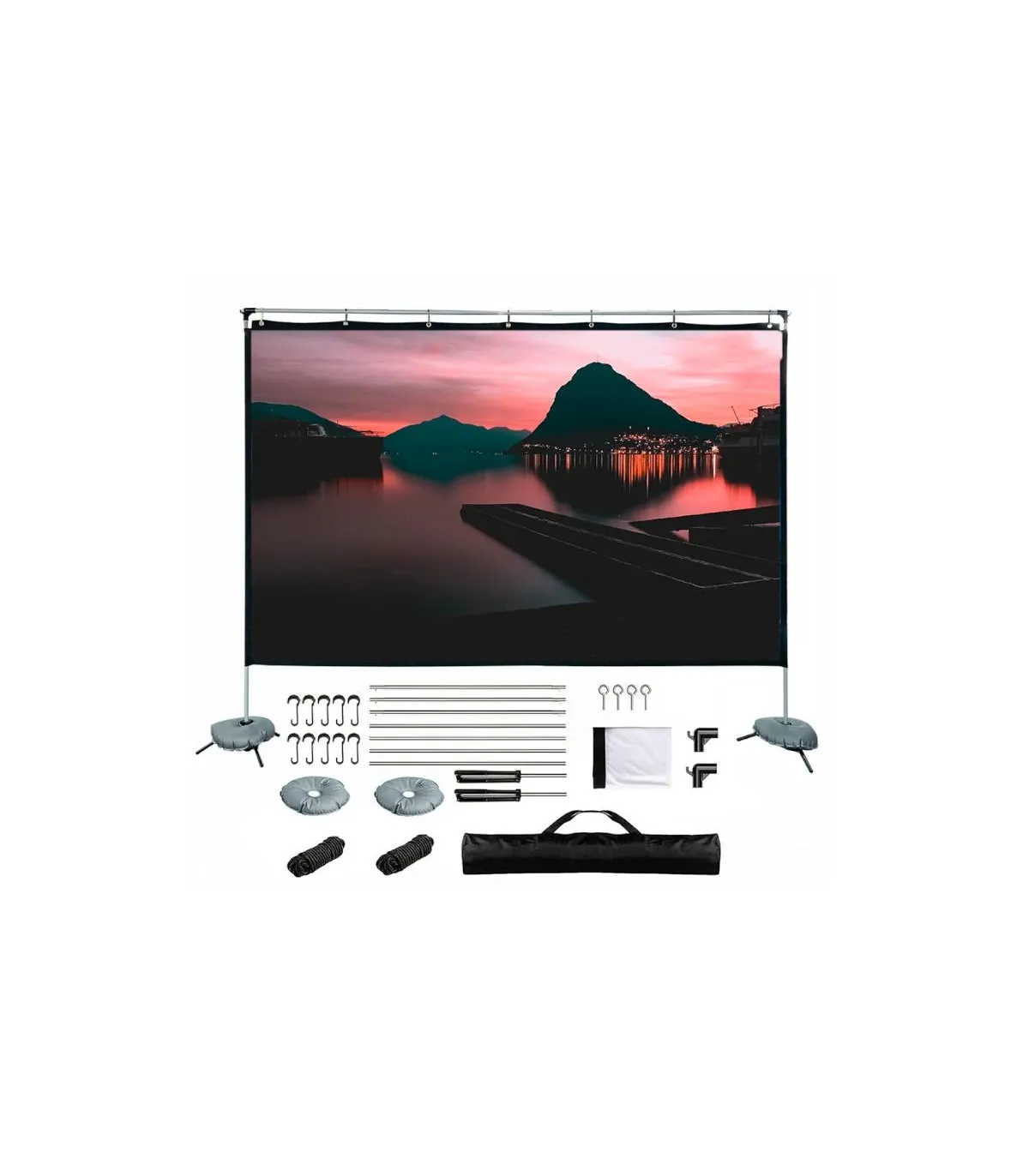| Características | - Área visible de 120" (265,6 x 149,4 cm) - Formato: panorámico 16:9 - Factor de ganancia: 1,1 - Ángulo de visión: 120º - Ideal para proyectar vídeo y fotografías - Bordes negros perimetrales de 5 cm - Apta para interiores y exteriores - Tela elástica de poliéster resistente a las arrugas, plegable y lavable - Ideal para cualquier tipo de proyector, SVGA, XGA, 3D, HD, Full HD y 4K - Temperatura de trabajo: -20ºC ~ +60ºC - Estructura ligera y desmontable de aluminio - Medida desmontada en bolsa de transporte: 83 x 17 x 9 cm - Peso total: 4,5 kg - Incluye bolsa de transporte, cuerdas, estacas y pesos (bolsas de agua) |