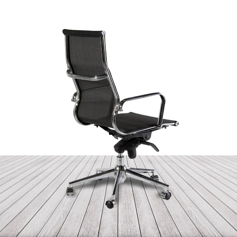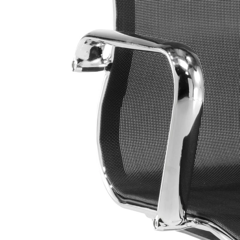 Sillón de dirección con una estructura ligera pero muy resistente fabricada en acero cromado. Con un diseño moderno y llamativo debido al brillante de su cromado y al tejido de malla.