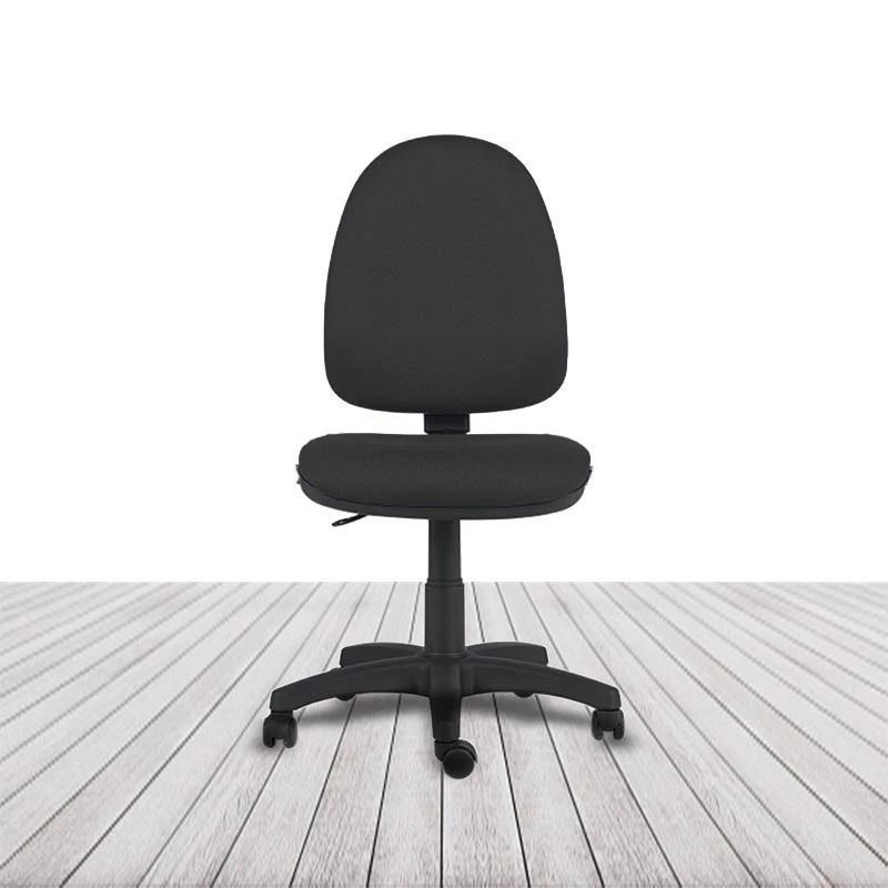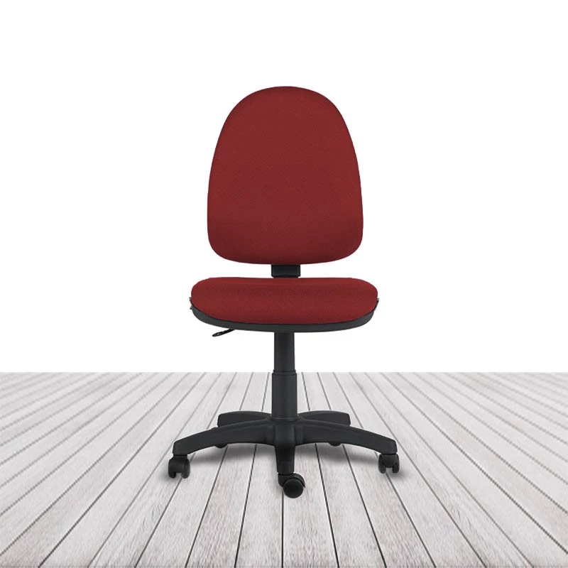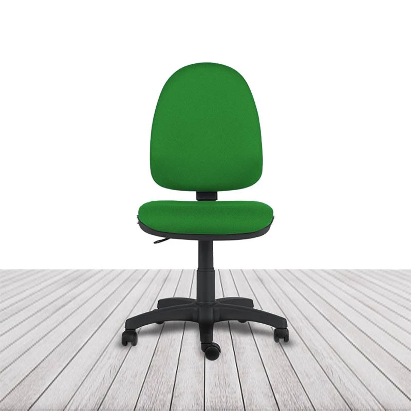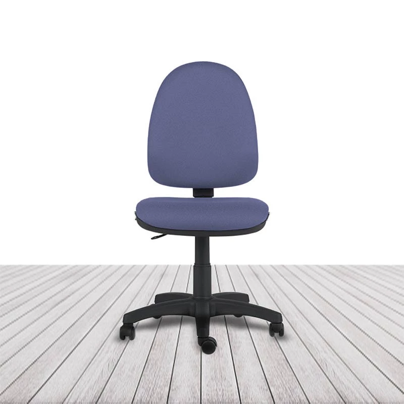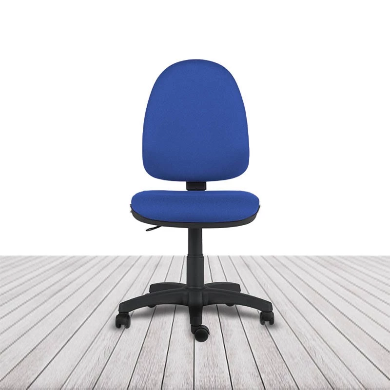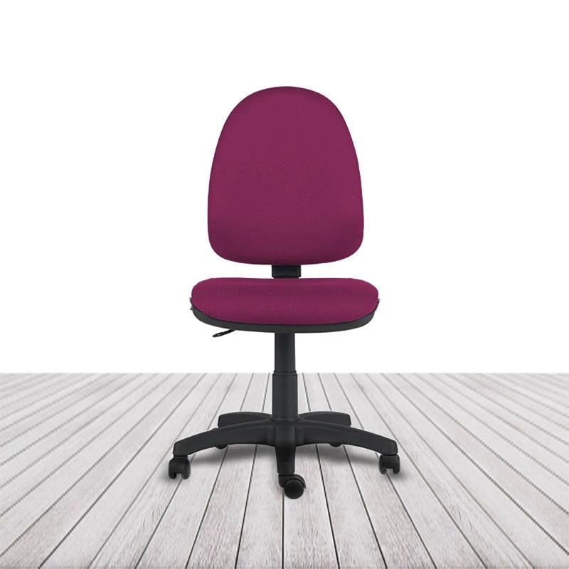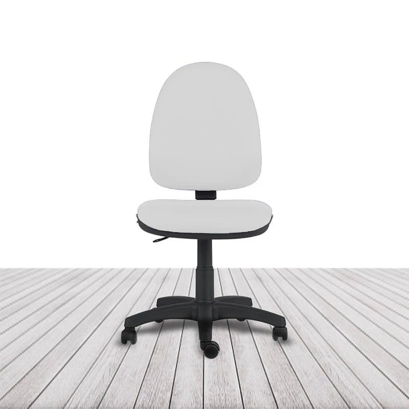 Regulación de altura del asiento por columna neumática. Regulación de inclinación del respaldo mediante mecanismo de contacto permanente. Regulación de altura de respaldo por sistema de cremallera multipunto. Sin brazos. Base de poliamida en color negro. Ruedas de rodadura blanda de serie. Acolchado de respaldo y asiento tapizado en tela o similpiel con espuma moldeada de 30 kg/m³. Asiento y respaldo interior en poliamida inyectada.