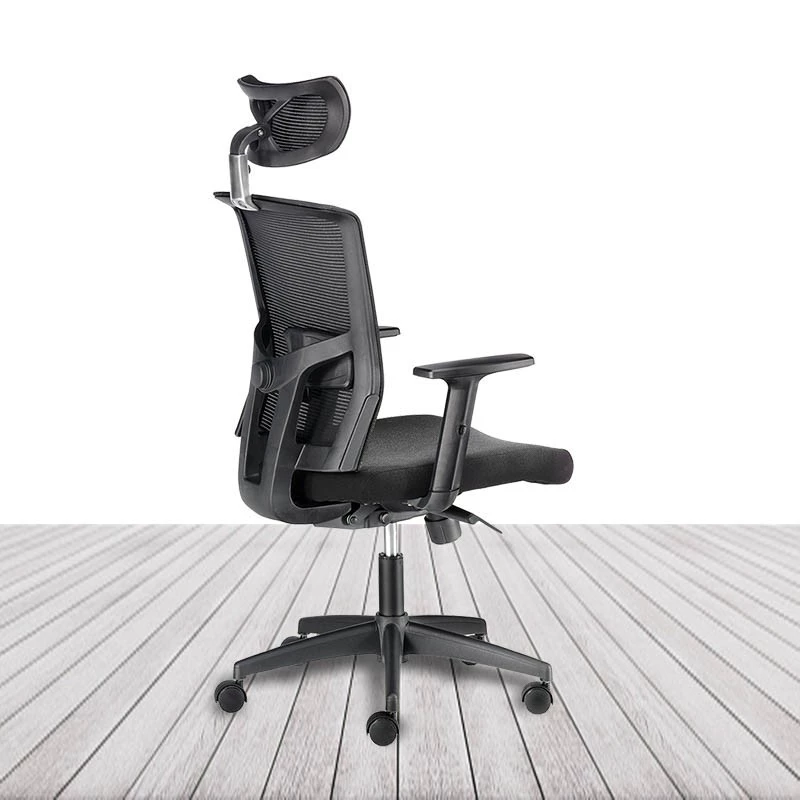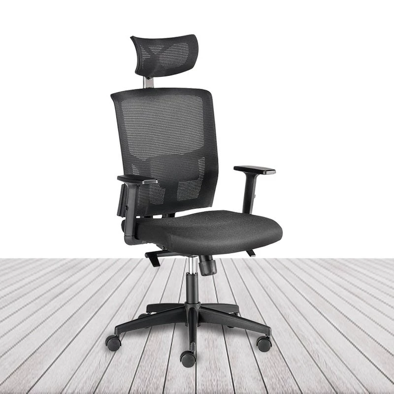 Silla de dirección ergonómica Po, con cabecero, silla tapizada en color negro.