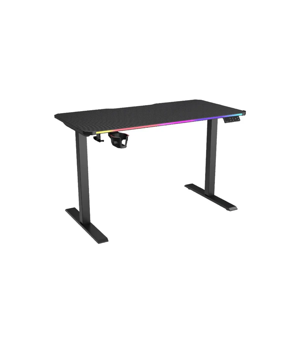 Marca Cougar Modelo 3MARS1SB.0001 Características - La iluminación RGB  - Ajuste de altura se detiene automáticamente al detectar resistencia  - El eje de transmisión y los protectores del motor evitan contactos accidentales o enganches en la ropa. - Gancho para auriculares - Bandeja para cables - Portavasos giratorio  - El panel con puerto USB-C  - Voltaje requerido para ajuste eléctrico: 100~240 V CA - Capacidad total de peso del escritorio: 80 kg Dimensiones - 120 x 60 x 1,8 cm - Altura del escritorio: 730~1180 mm Fecha de revisión 02-01-2026 por RTY