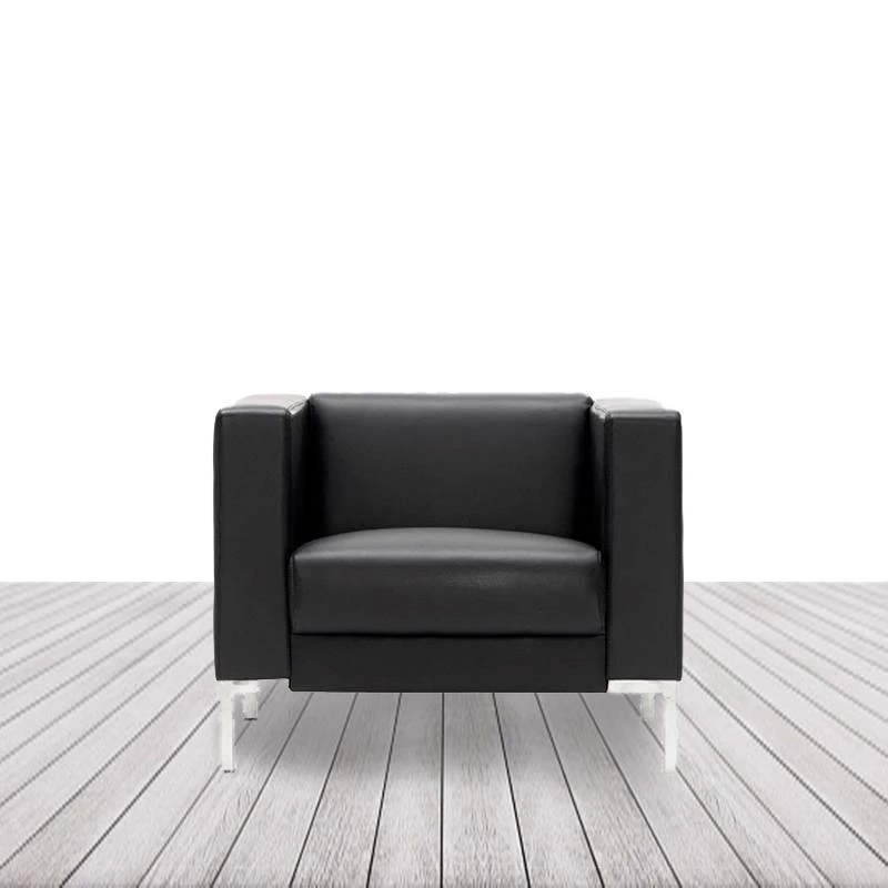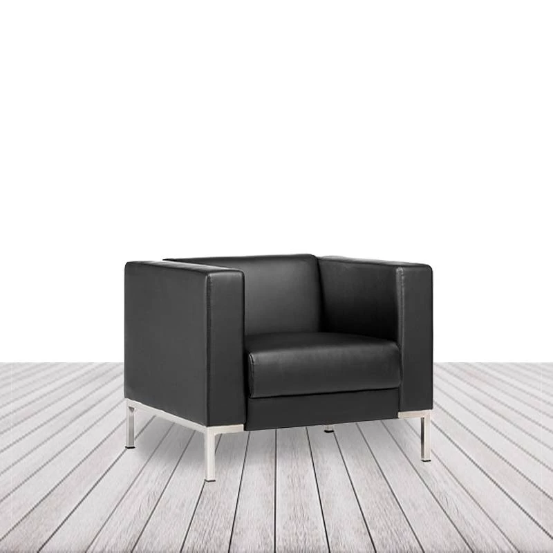 Sillón de ecopiel con patas cromadas.
